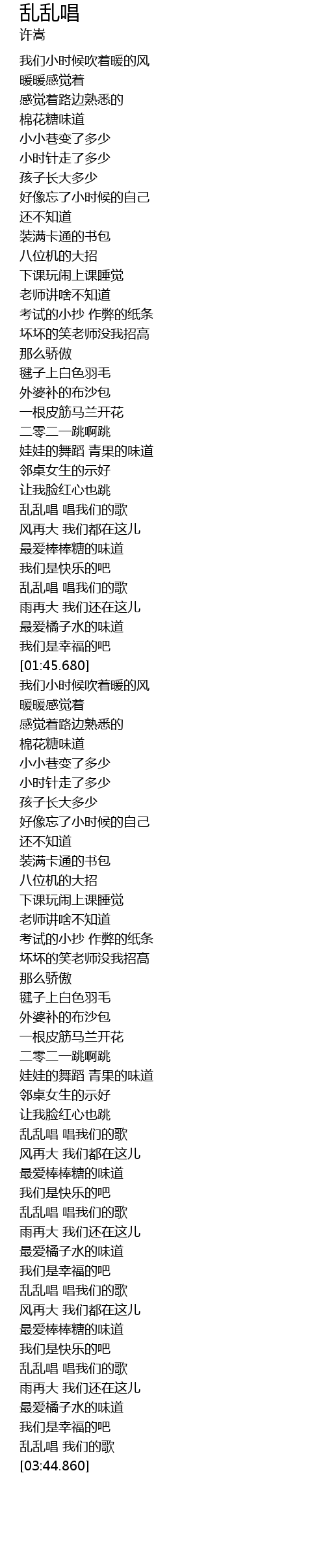 | [03:02.550] | 乱乱唱 唱我们的歌 |