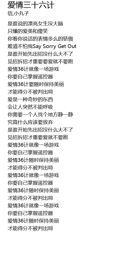 | [00:48.460] | 爱情36计就像一场游戏 |