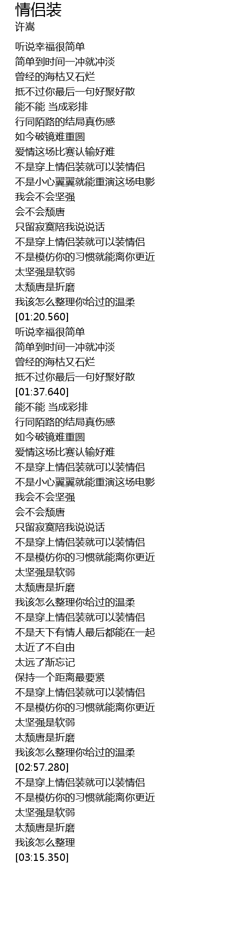 | [02:41.640] | 不是穿上情侣装就可以装情侣 |