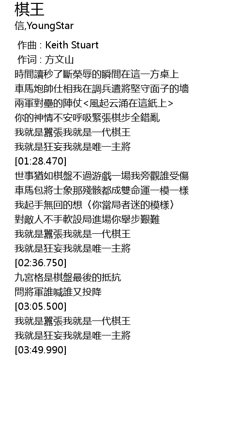 | [02:18.320] | 我就是囂張我就是一代棋王 |