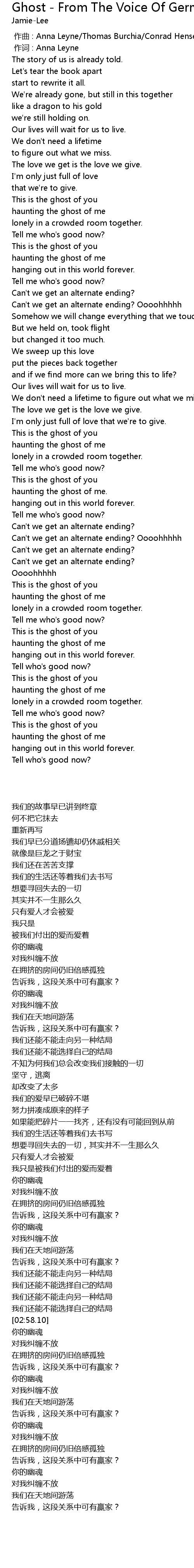 | [02:18.59] | This is the ghost of you |