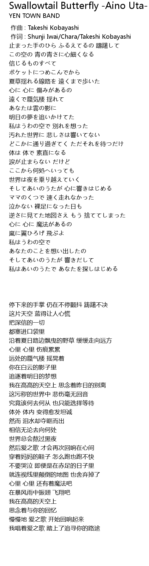 | Song | Swallowtail Butterfly -Aino Uta- - Remastered 2015 |
