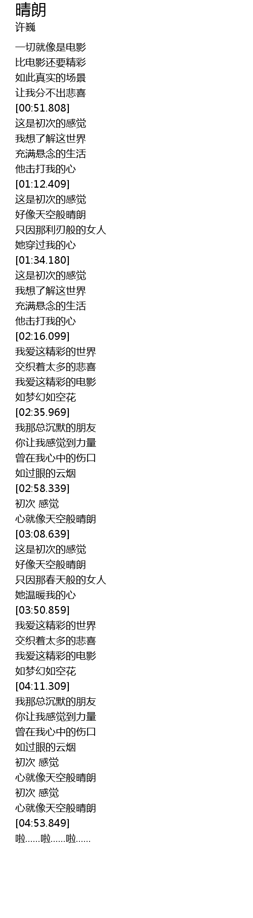 | [04:39.839] | 心就像天空般晴朗 |