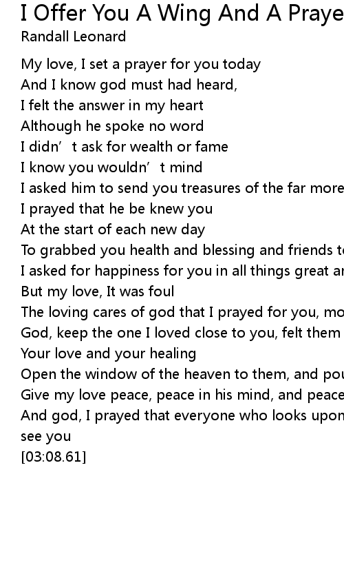 | [01:51.96] | The loving cares of god that I prayed for you, most of all |