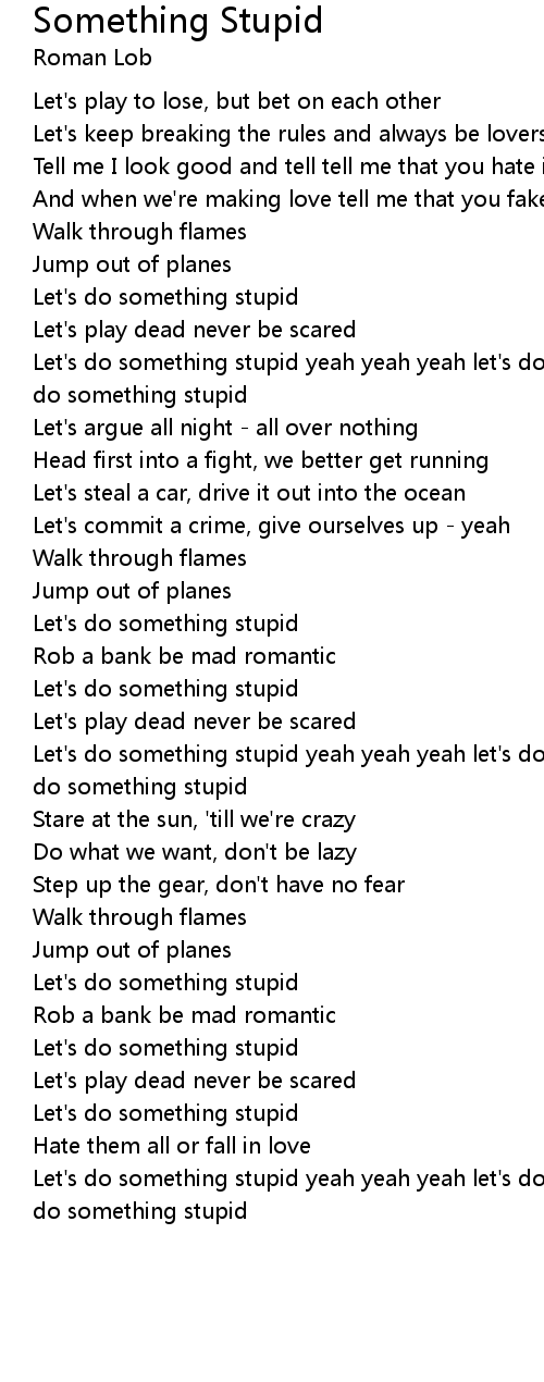 | Let's do something stupid yeah yeah yeah let's do something yeah yeah yeah let's do something stupid |