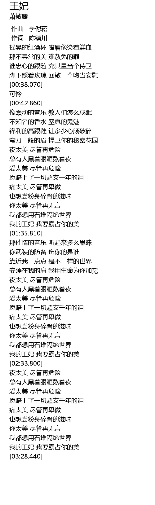 | [02:27.840] | 我的王妃 我要霸占你的美 |