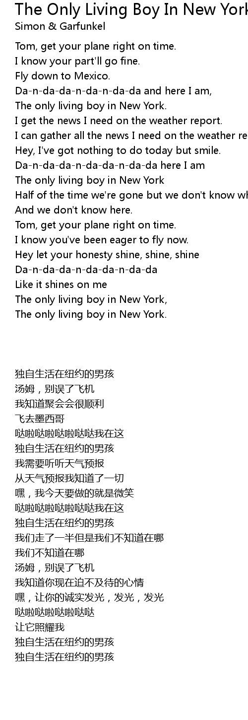 The Only Living Boy In New York ((El Unico Chico Vivo De Nueva Yo) Lyrics