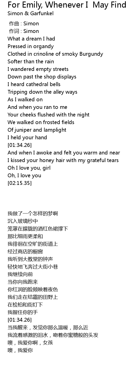 | [01:48.46] | I kissed your honey hair with my grateful tears |
