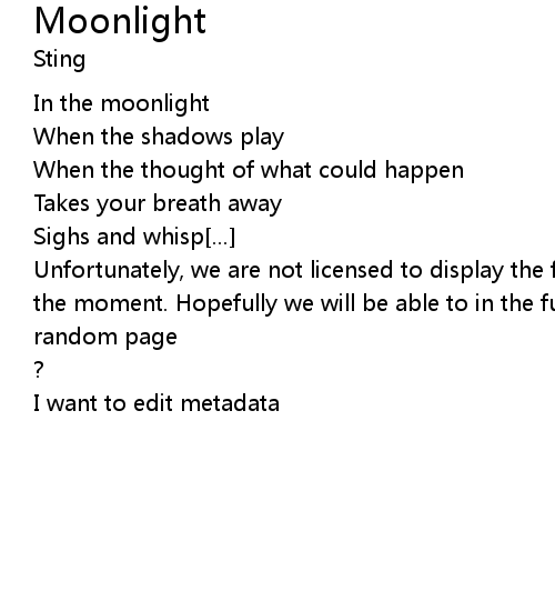 | Unfortunately, we are not licensed to display the full lyrics for this song at the moment. Hopefully we will be able to in the future. Until then, how about a | |