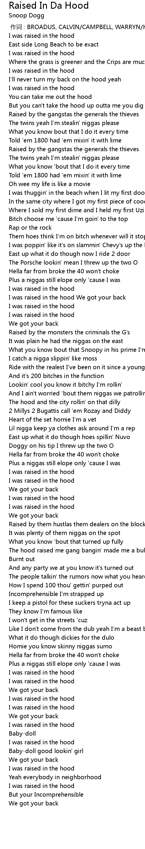 | [00:09.37] | I was raised in the hood |