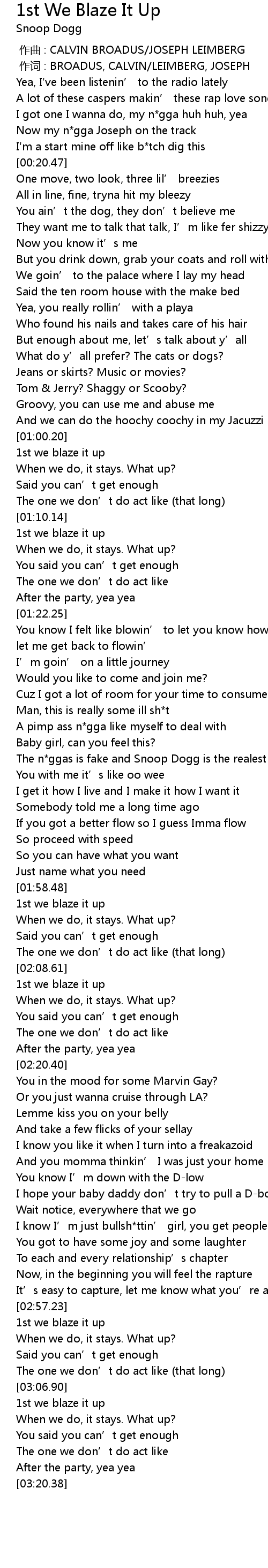 | [01:41.76] | The n ggas is fake and Snoop Dogg is the realest |