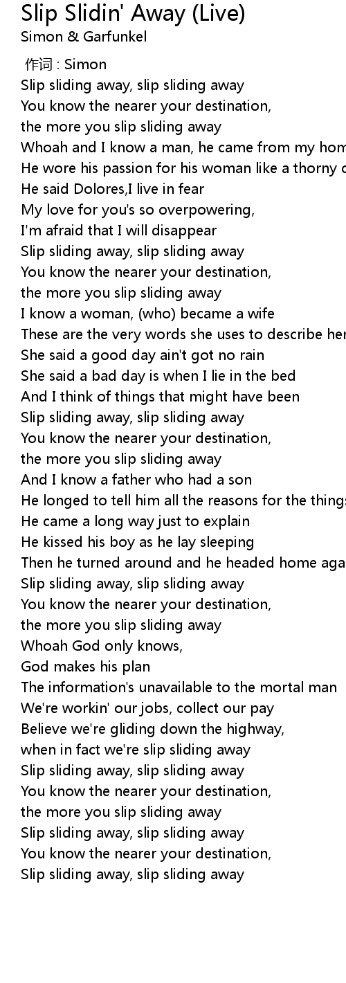 | [02:53.42] | Slip sliding away, slip sliding away |