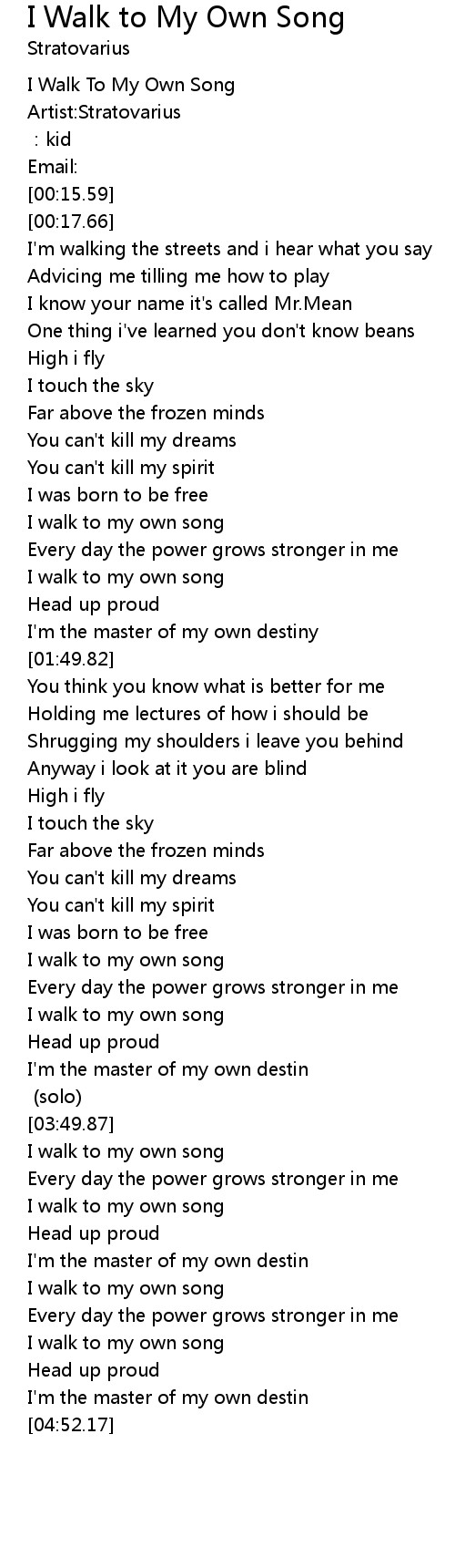 | [04:29.20] | I walk to my own song |