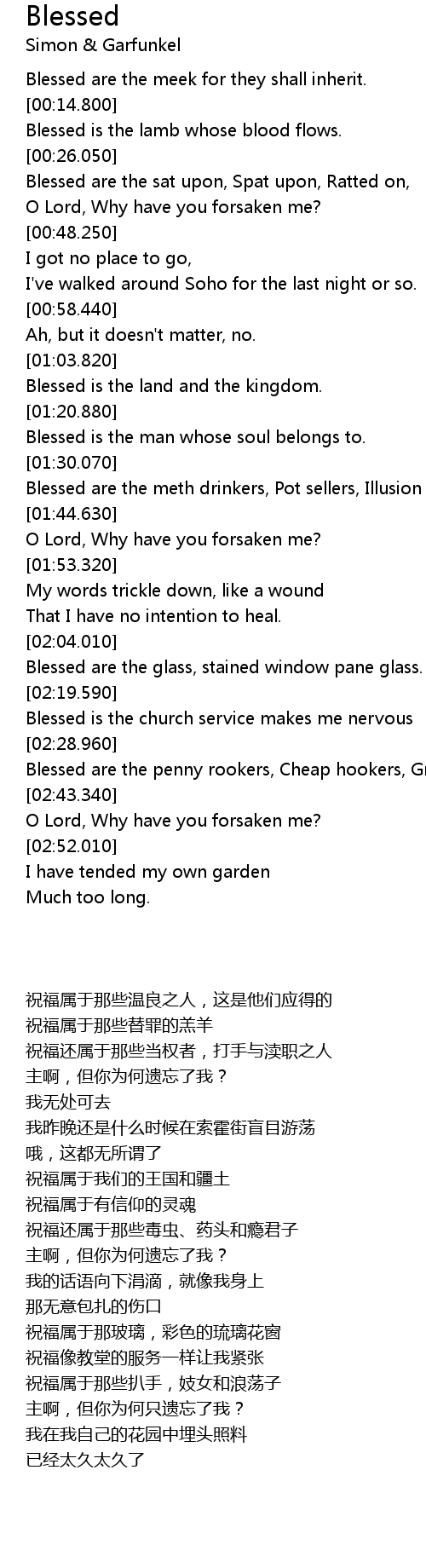 Blessed are the sat upon, Spat upon, Ratted on, |