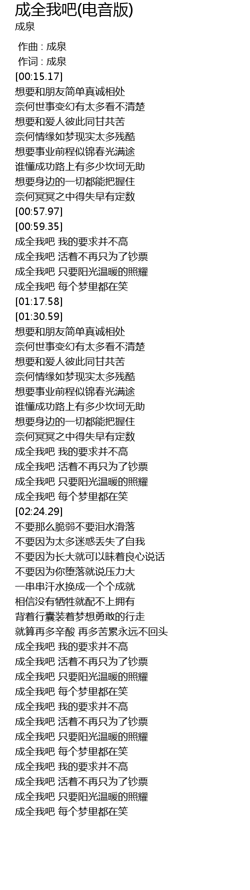 | [02:08.58] | 成全我吧 我的要求并不高 |