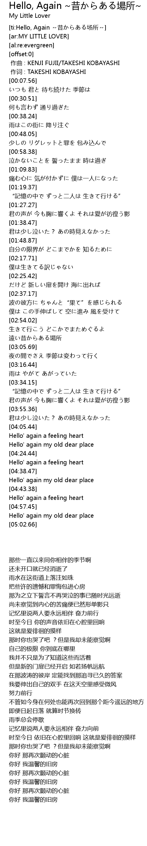 | [01:20.14] | “記憶の中で ずっと二人は 生きて行ける” |