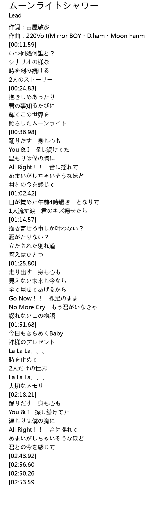 | [03:02.85][02:50.26] | Yeah Moonlight |