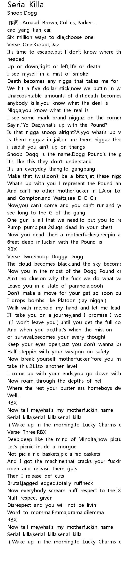 | [03:06.818] | Serial killa,serial killa,serial killa |