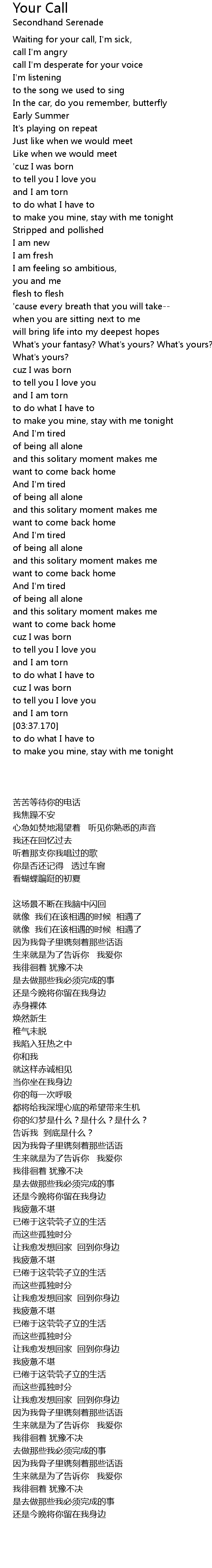 Waiting for your call, I'm sick, |