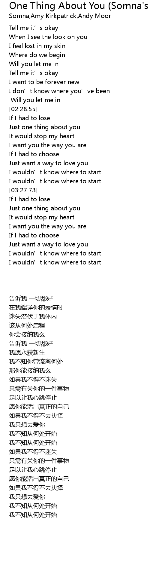 | Song | One Thing About You (Somna's Deeper Mix) |