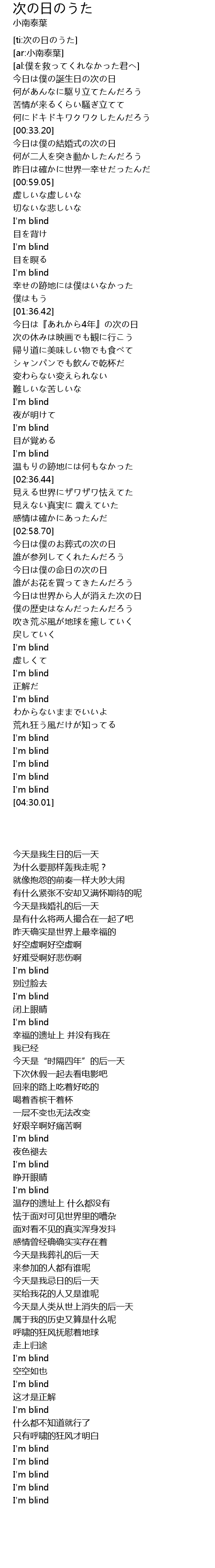 | [02:13.34] | I' m blind |