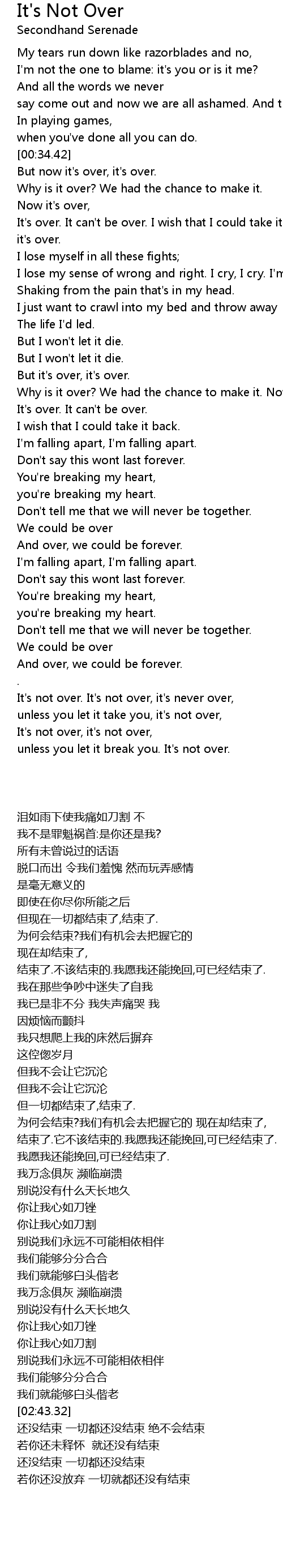 It's over. It can't be over. I wish that I could take it back, but it's over. |