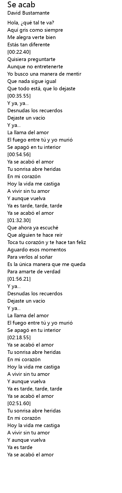 | [00:32.92] | Que todo esta, que lo dejaste |
