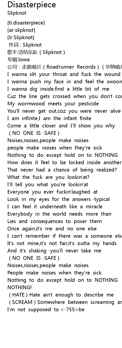 | [00:01.02] | 歌手:活结乐队(Slipknot) |