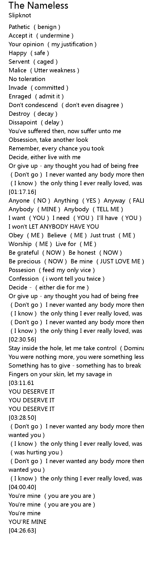 | [04:20.39] | You' re mine |