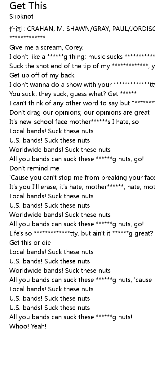 | 作词 : CRAHAN, M. SHAWN/GRAY, PAUL/JORDISON, NATHAN/TAYLOR, COREY | |