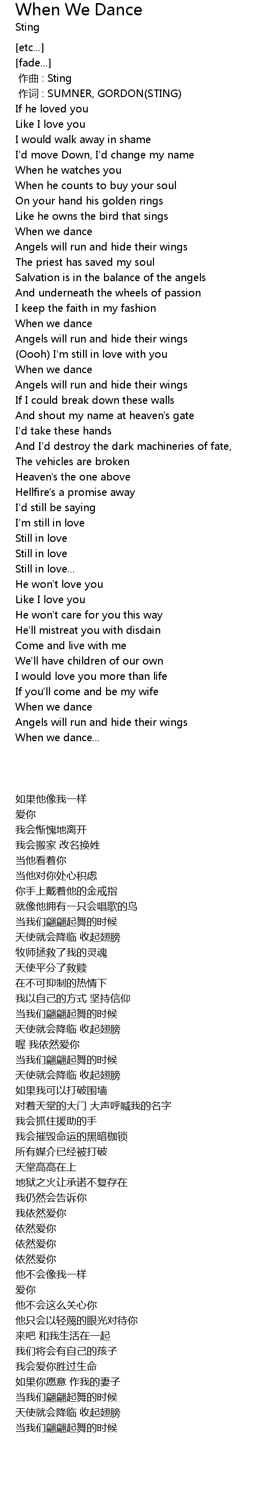 | [00:01.00] | zuò cí : SUMNER, GORDON STING |