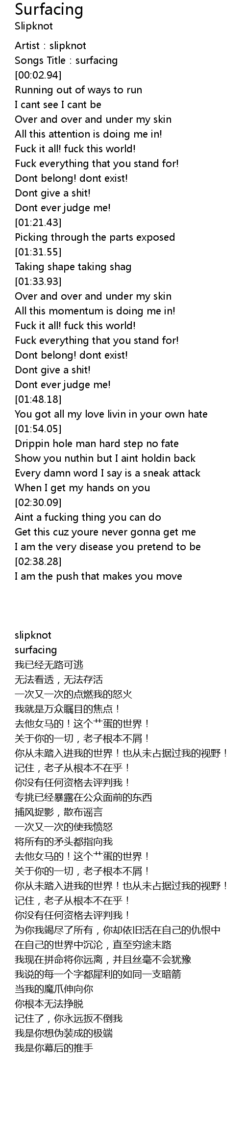 | [00:01.94] | Songs Title: surfacing |