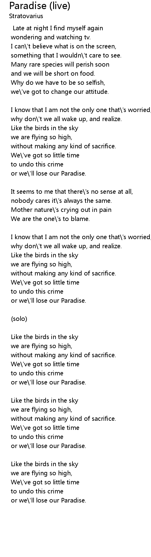or we\'ll lose our Paradise. |