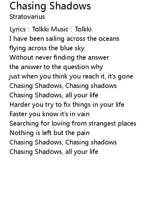 | Chasing Shadows, Chasing shadows | |