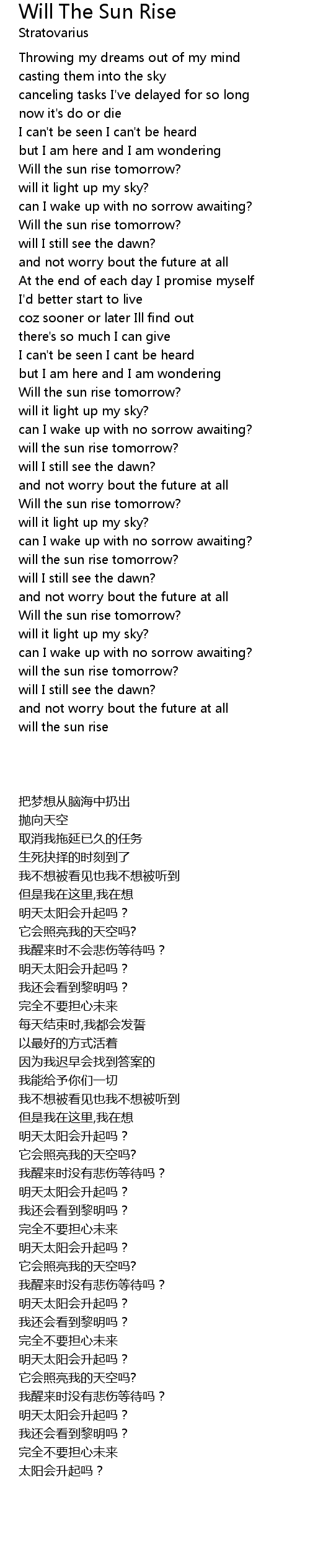 will I still see the dawn? |