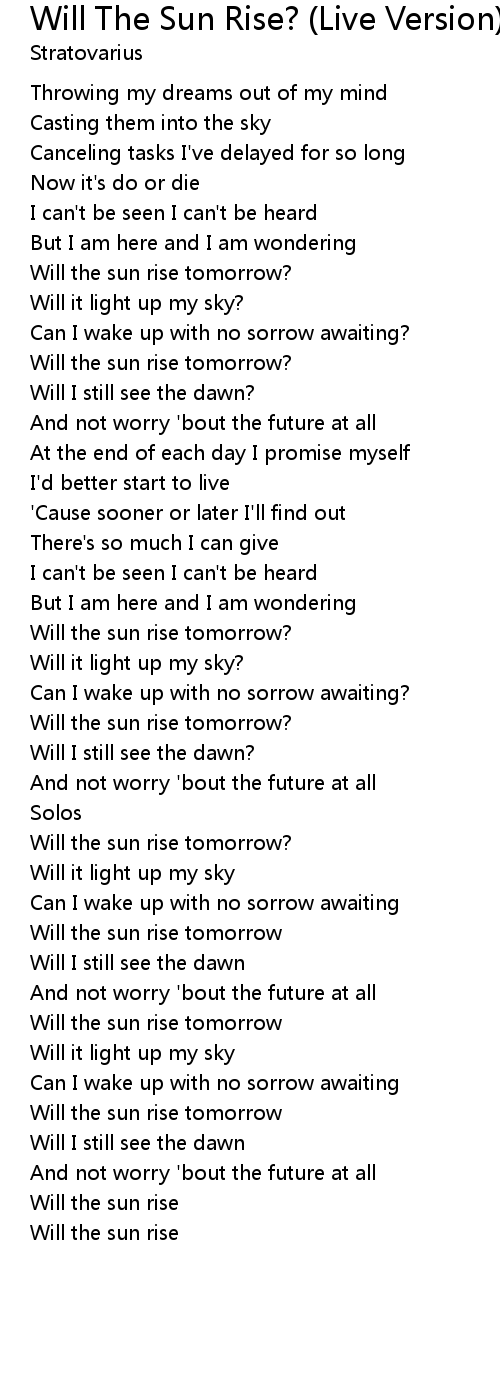 Will the sun rise |