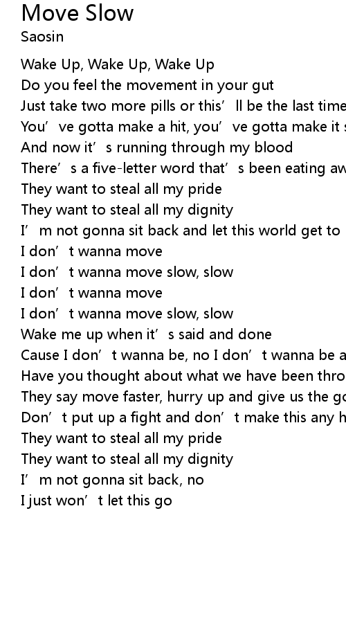 | I don’t wanna move slow, slow | |