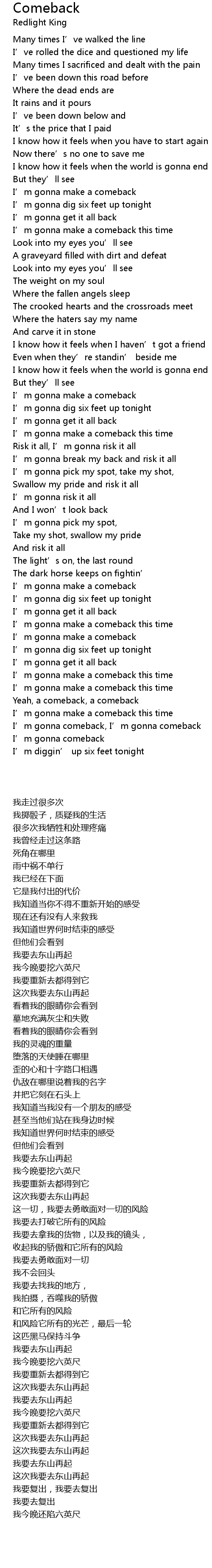 | [03:26.390] | I' m gonna comeback, I' m gonna comeback |