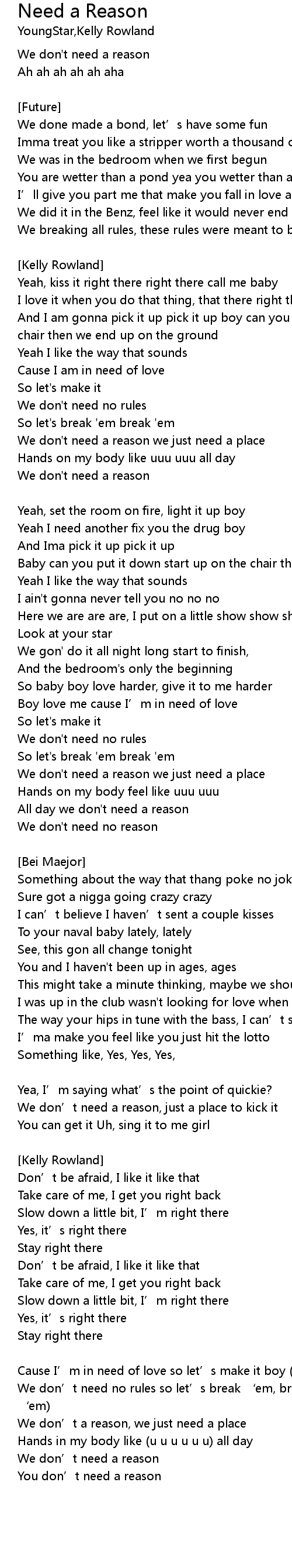 | Cause I’m in need of love so let’s make it boy (I’m in need of love) | |