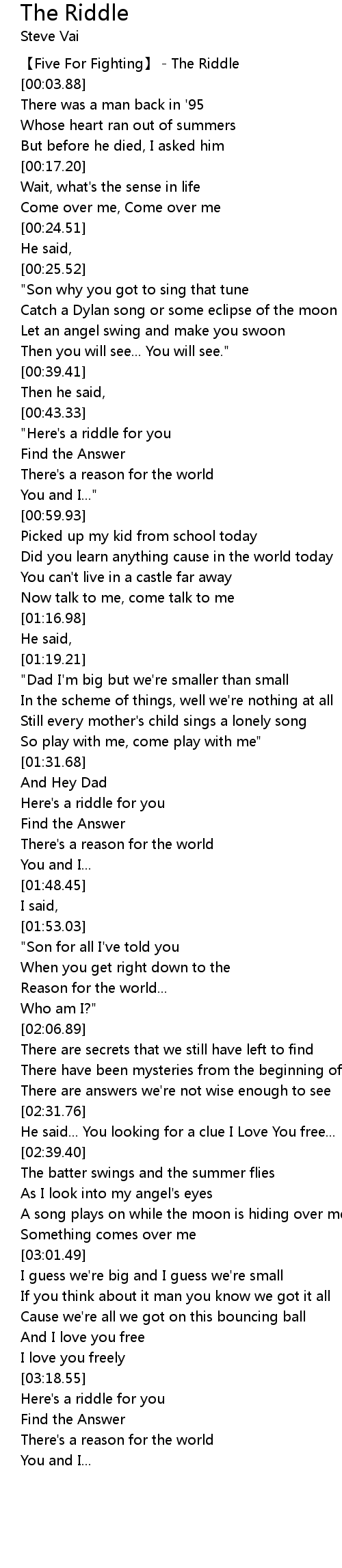 | [00:44.50] | "Here's a riddle for you |