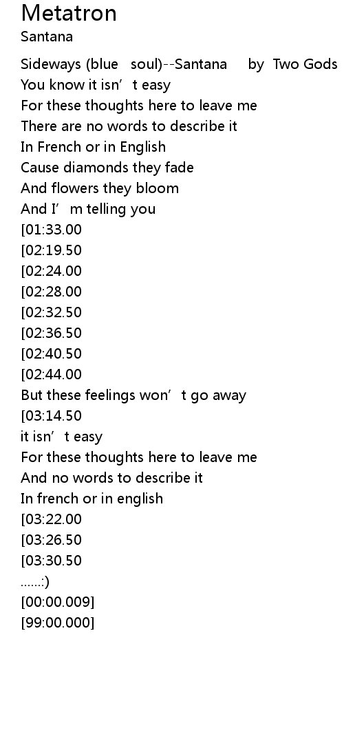 | [00:00.100] | Sideways (blue soul)--Santana by Two Gods |