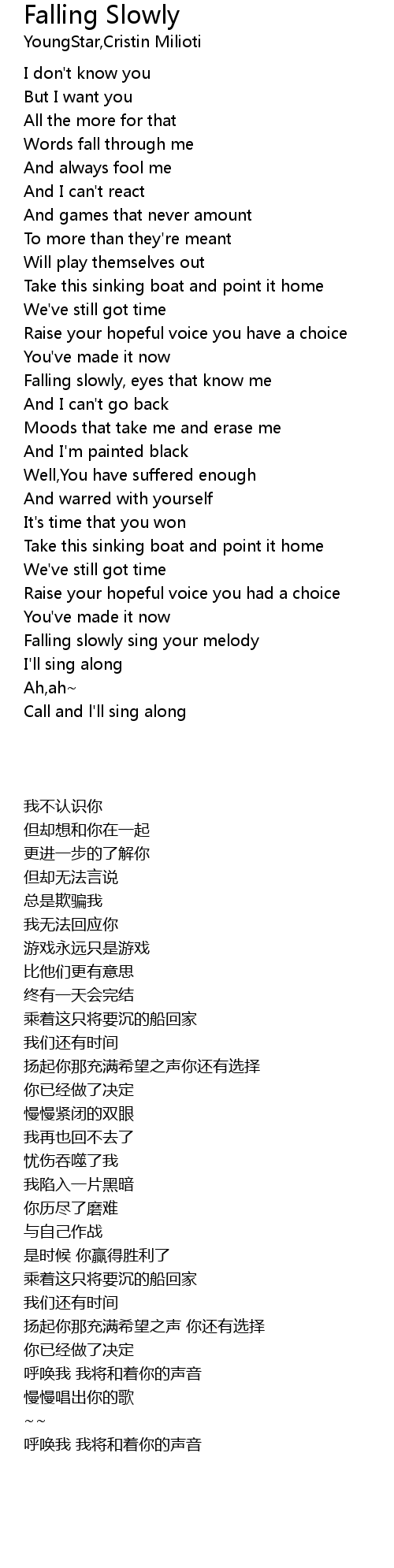 Falling slowly sing your melody |