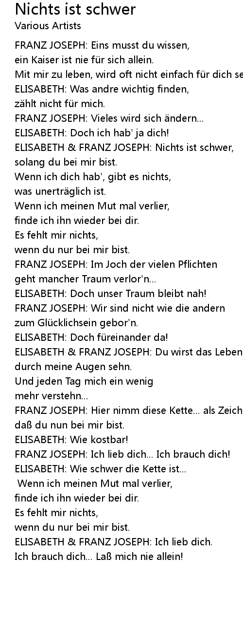 | [00:56.75] | ELISABETH & FRANZ JOSEPH: Nichts ist schwer, |
