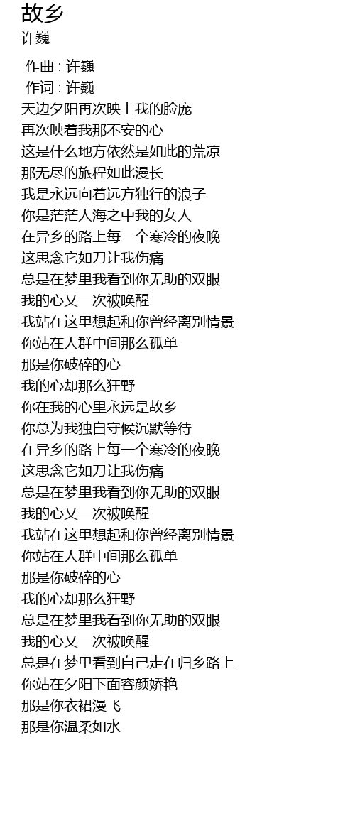 | Song | 故乡 |