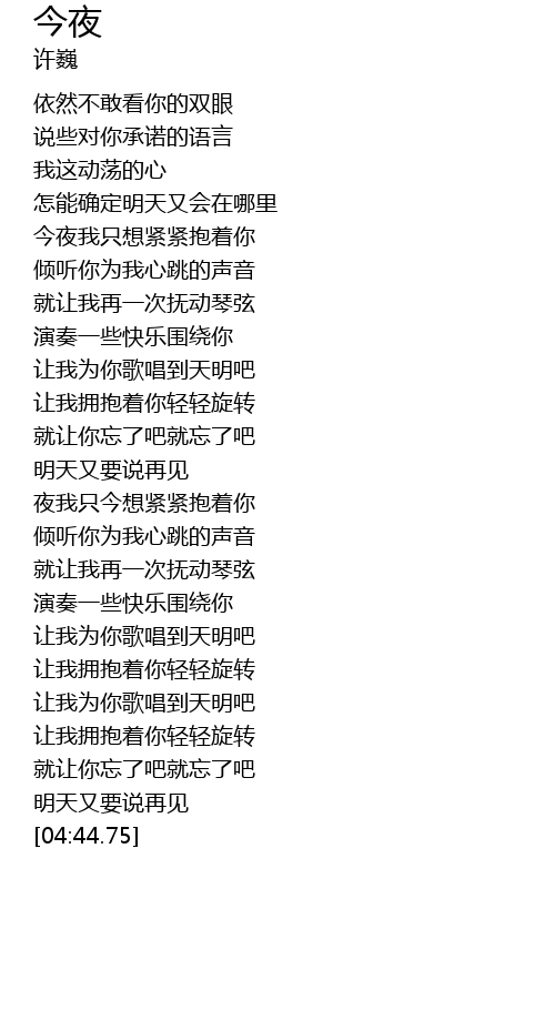 | [01:12.44] | 让我为你歌唱到天明吧 |