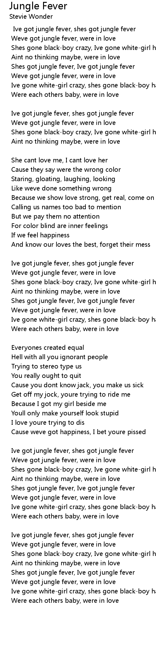 Ive got jungle fever, shes got jungle fever