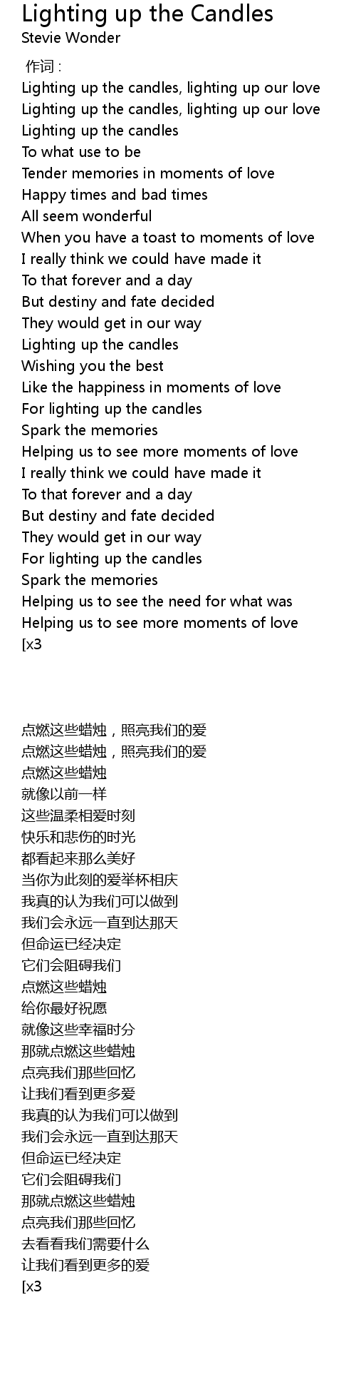 | [00:00.500] | Lighting up the candles, lighting up our love |