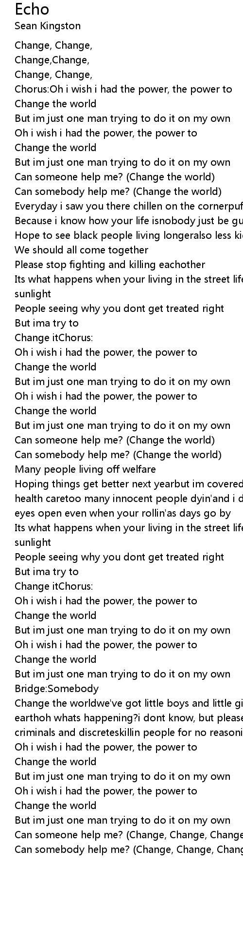 Change the worldwe've got little boys and little girlsgrowing up on this sinful earthoh whats happening?i dont know, but please tell mewe've got all these criminals and discreteskillin people for no reasoni dont know whychorus: |