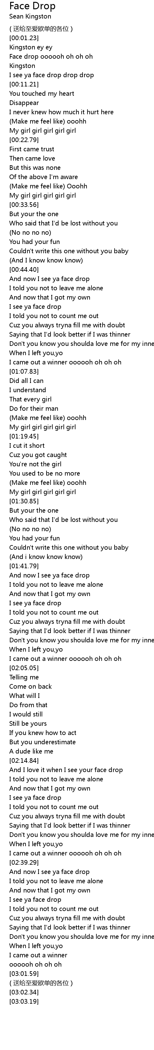 | [00:03.70] | Face drop oooooh oh oh oh |
