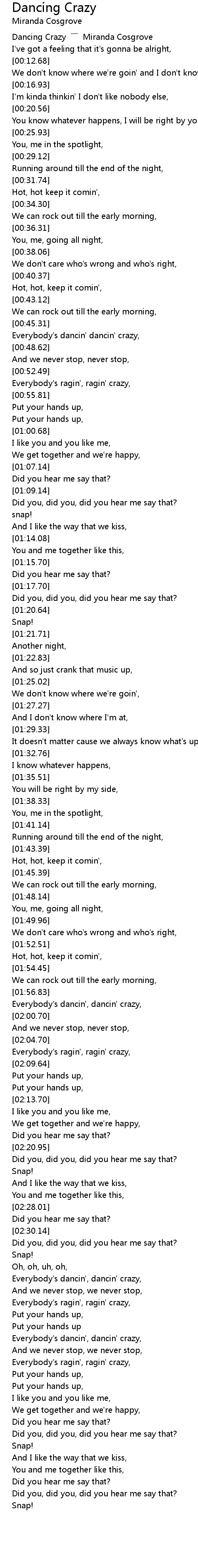 | [00:01.51] | Dancing Crazy Miranda Cosgrove |